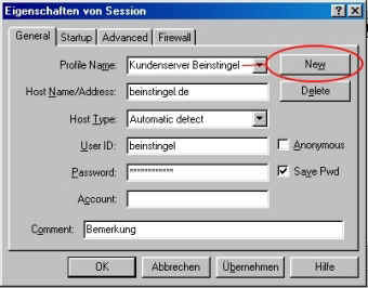 FTP-Programm (hier: WS_FTP95 LE) auf den Server. Nutzen Sie immer die